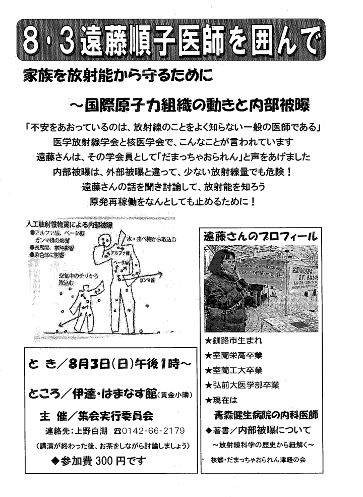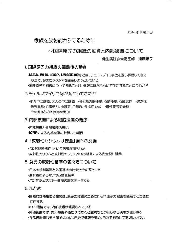 遠藤順子20140803家族を放射能から守るために~国際原子力組織の動きと内部被曝