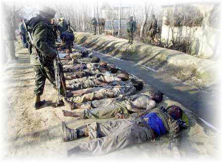 新年早々「インドが実効支配するジャム・カシミール州南部のジャム市西方約八十キロのパランワラ地区で、インド兵一人が死亡、五人が負傷した」とのニュースが伝えられている。ジャム市はパキスタンの国境沿いにあり、そこからさらに80キロ西の地点で戦闘になったというから、殆ど国境地帯で戦闘になったことになる。同じ日、やはり停戦ラインを挟んでの戦闘があり、パキスタン兵4名が死亡、同州プーンチ地区でも戦闘でインド兵1名が戦死している。いずれもカシミールでの戦闘で、インド側のジャム・カシミールが戦場となっていることから、パキスタン軍の進撃にインド軍が応戦したと推測される。写真は同日、スリナガルの南55キロ地点での戦闘後のものだが、パキスタン分離主義グループ8人の遺体が横たわっている。昨日の日誌でも書いたが、ここスリナガルにはインドの核ミサイル基地があり、射程250キロのプリトヴィ・ミサイルが配備されている。パキスタン軍の狙いがここにあることはほぼ間違いないだろう。昨日付けワシントン・タイムズでは「衛星写真によると、パキスタンのあるミサイル基地では格納庫のドアが開き、ミサイル移動の準備をしている様子が確認された」と報道されたが、このところのパキスタン軍のジャム・カシミールへの先制攻撃から推定して、その場所はサルゴダ空軍基地の中国製M11ミサイルを指すものと思われる。この周辺にはウラン鉱山や原発施設もあることから、核ミサイルであることの公算が大きい。これにインドもまた核ミサイルでの応戦を準備していてもおかしくはない。まさに一触即発の状況であることがひしひしと実感される。