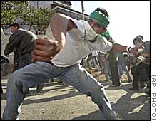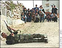 | イスラエル軍との交戦で身を伏せるパレスチナ警官 =15日、ラマラで -CNN イスラエル軍は十六日未明(日本時間同日午前)、ヨルダン川西岸パレスチナ自治区ヘブロン、トゥルカレムなどにあるパレスチナ解放機構(PLO)主流派ファタハの事務所三か所と、自治区エリコのファタハ民兵組織の弾薬庫と見られる施設を武装ヘリでミサイル攻撃した。 |