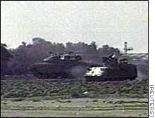 | ガザ地区のユダヤ人入植地 付近で警戒するイスラエル軍戦車 |