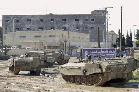 2002/3/29、イスラエル軍がラマラにある議長府の壁を突き破って侵入する