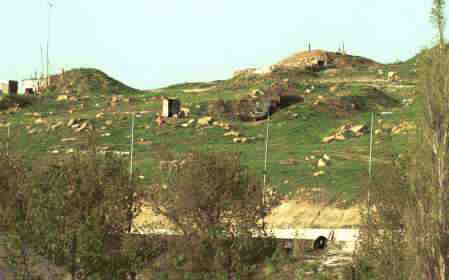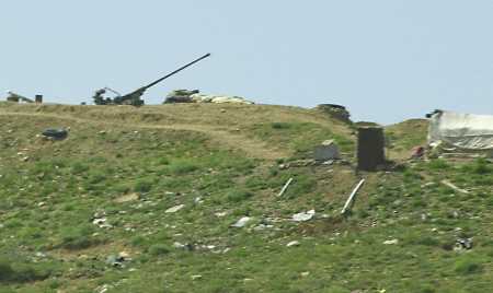 - ダマスカスハイウェーの北、2001年4月16日月曜日への、イスラエルの空襲によって打たれたシリアのレーダー駅の近くの対航空機のシリアのポジション。