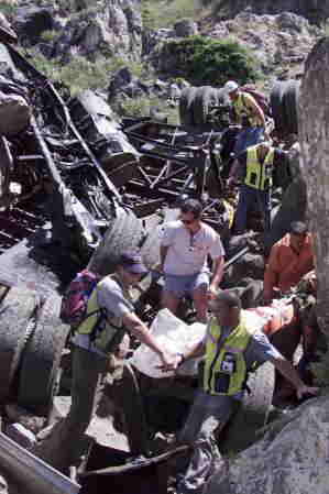 plunged over 100 meters into a ravine. The